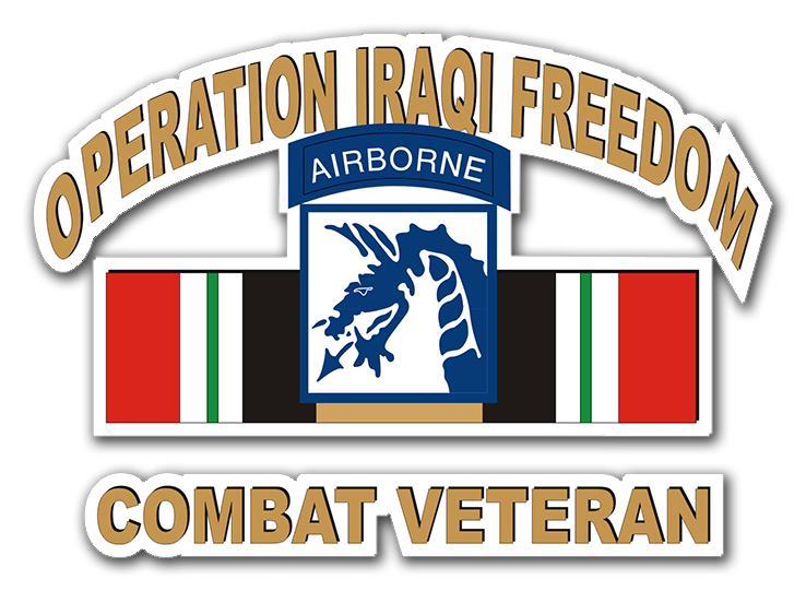 This 18th Airborne Corps Iraq Combat Veteran with Ribbons Die-Cut Vinyl Decal Sticker is an ArmyDecals.com exclusive. Proudly Made in the USA, our Vinyl transfer decals are made of the highest quality vinyl and UV resistant graphics available and are laminated to provide extra protection against the elements. Our U.S. Army Decals are the highest quality decals on the market!