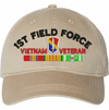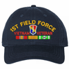Show your Army pride with this 1st Field Force Vietnam Veteran with Ribbons Unstructured Dad Cap from ArmyDecals. Crafted from 100% washed chino twill cotton, this six-panel, low-profile cap offers a relaxed and comfortable fit. Featuring high-quality embroidery done in our Scottsboro, Alabama facility, this cap is designed with a pre-curved visor and an adjustable tri-glide buckle closure for a perfect fit. Whether for everyday wear or as a meaningful gift, this cap is a great way to honor your own or a loved one's service.