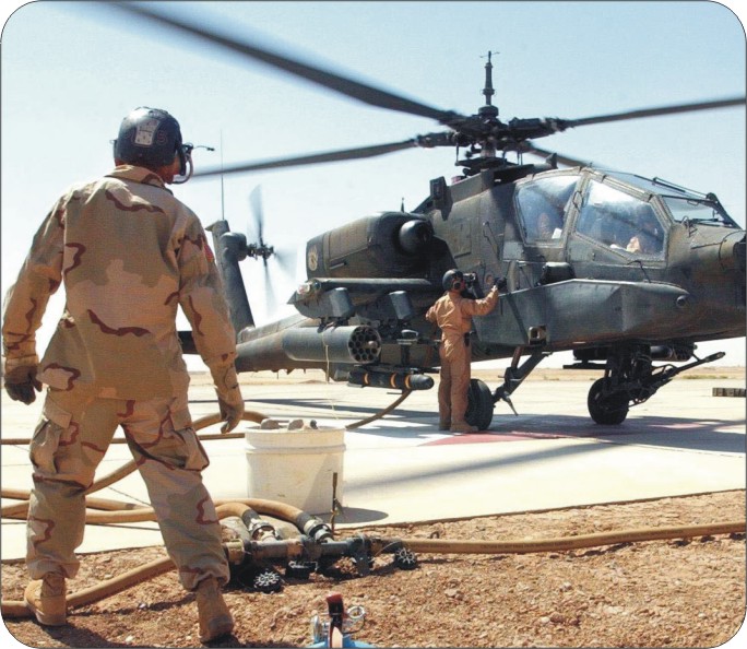 This Apache FOB Mackenzie mouse pad features an Army refueler "tops off" an Apache AH-64A with fuel at Forward Operating Base Mackenzie, Iraq.