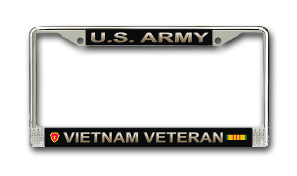 This Army 25th Infantry Division Vietnam Veteran License Plate Frame is made from the highest quality finished metal alloy. Each one is designed to provide years of use. Each is designed in our facility in Scottsboro, AL.