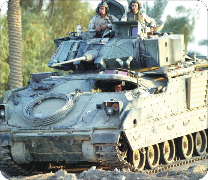 This Bradley Fighting Vehicle on Patrol mouse pad features Soldiers from the Tactical Psychological Operations Team 1092, 155th Brigade Combat Team, patrol Tak, Iraq, in their Bradley Fighting Vehicle.