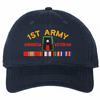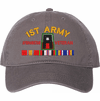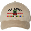 Show your Army pride with this First Army Afghanistan Veteran with Ribbons Unstructured Dad Cap from ArmyDecals. Crafted from 100% washed chino twill cotton, this six-panel, low-profile cap offers a relaxed and comfortable fit. Featuring high-quality embroidery done in our Scottsboro, Alabama facility, this cap is designed with a pre-curved visor and an adjustable tri-glide buckle closure for a perfect fit. Whether for everyday wear or as a meaningful gift, this cap is a great way to honor your own or a loved one's service.