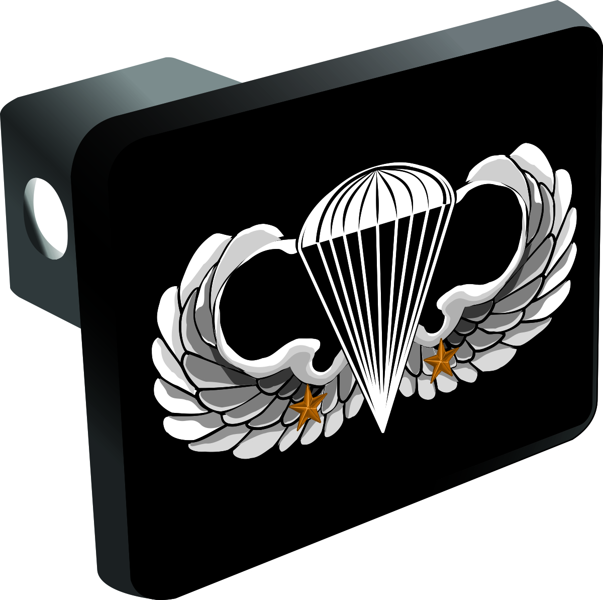 This U.S. Army Basic 2 Combat Jump Wings Trailer Hitch Cover is proudly Made in the USA. Each Hitch Cover's face plate measures 4.7" x 3.4" and is applied on a black heavy duty injection molded plastic 2" hitch cover; link pin not included. The face plate of the hitch cover is sublimation printed to provide a beautiful glossy finish sure to catch the eye. This hitch cover would make a wonderful addition to your truck or other vehicle.A percentage of the sale of each ArmyDecals item is forwarded to the licensing departments of each respective branch of service in support of the MWR (Morale, Welfare, & Recreation) program. These payments are made by either ALL4U LLC or the wholesaler from where the item originated. Our team thanks you for your service and your support of these programs.