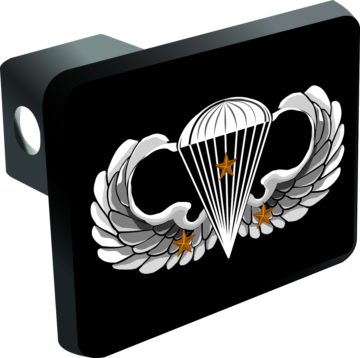 This U.S. Army Basic 3 Combat Jump Wings Trailer Hitch Cover is proudly Made in the USA. Each Hitch Cover's face plate measures 4.7" x 3.4" and is applied on a black heavy duty injection molded plastic 2" hitch cover; link pin not included. The face plate of the hitch cover is sublimation printed to provide a beautiful glossy finish sure to catch the eye. This hitch cover would make a wonderful addition to your truck or other vehicle.A percentage of the sale of each ArmyDecals item is forwarded to the licensing departments of each respective branch of service in support of the MWR (Morale, Welfare, & Recreation) program. These payments are made by either ALL4U LLC or the wholesaler from where the item originated. Our team thanks you for your service and your support of these programs.