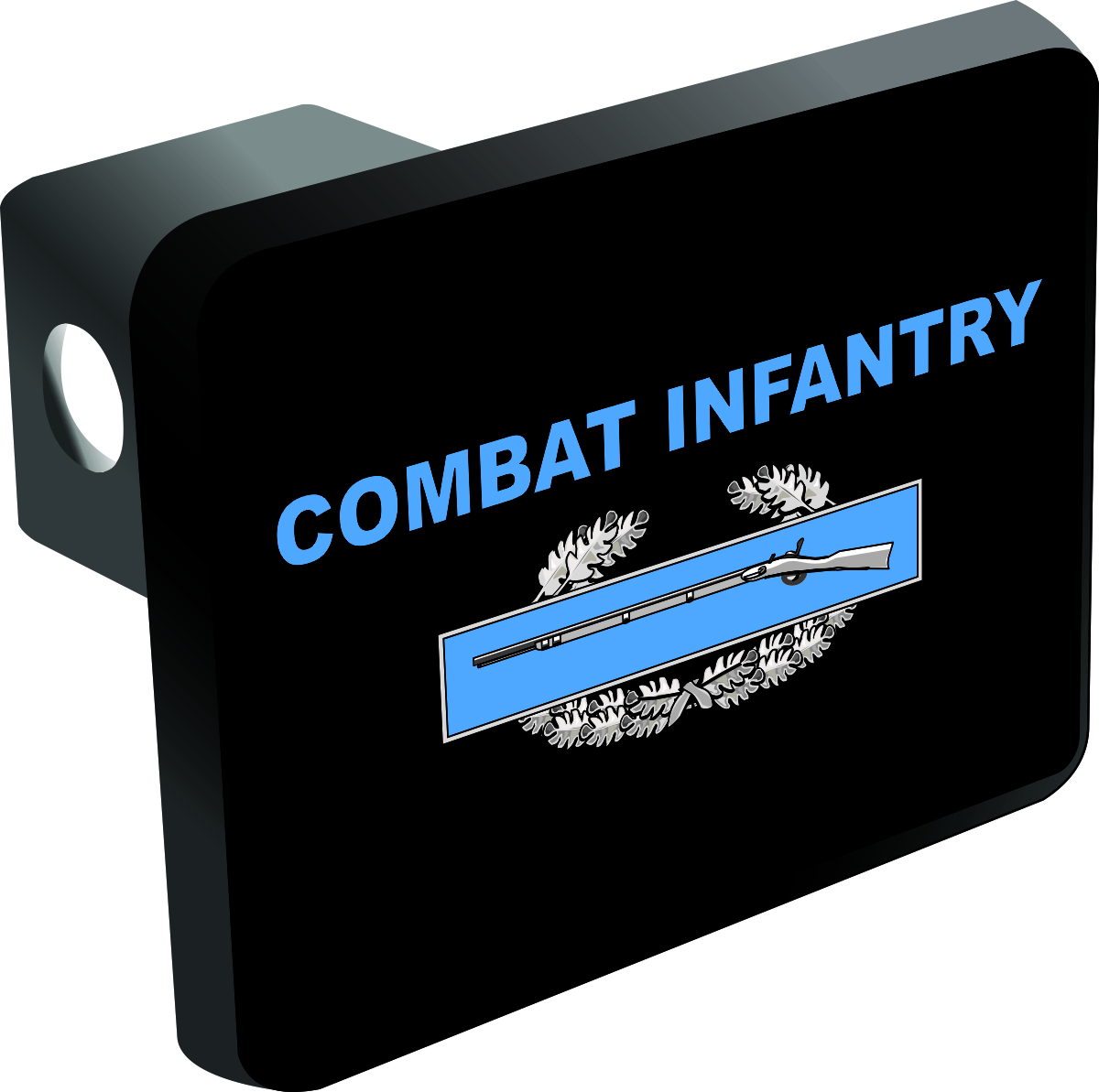 This U.S. Army Combat Infantry Badge With Text Trailer Hitch Cover is proudly Made in the USA. Each Hitch Cover's face plate measures 4.7" x 3.4" and is applied on a black heavy duty injection molded plastic 2" hitch cover; link pin not included. The face plate of the hitch cover is sublimation printed to provide a beautiful glossy finish sure to catch the eye. This hitch cover would make a wonderful addition to your truck or other vehicle.A percentage of the sale of each ArmyDecals item is forwarded to the licensing departments of each respective branch of service in support of the MWR (Morale, Welfare, & Recreation) program. These payments are made by either ALL4U LLC or the wholesaler from where the item originated. Our team thanks you for your service and your support of these programs.