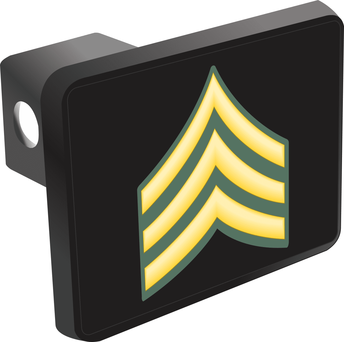 This U.S. Army E-5 Sergeant Hitch Cover is proudly Made in the USA. Each Hitch Cover's face plate measures 4.7" x 3.4" and is applied on a black heavy duty injection molded plastic 2" hitch cover; link pin not included. The face plate of the hitch cover is sublimation printed to provide a beautiful glossy finish sure to catch the eye. This hitch cover would make a wonderful addition to your truck or other vehicle.A percentage of the sale of each ArmyDecals item is forwarded to the licensing departments of each respective branch of service in support of the MWR (Morale, Welfare, & Recreation) program. These payments are made by either ALL4U LLC or the wholesaler from where the item originated. Our team thanks you for your service and your support of these programs.
