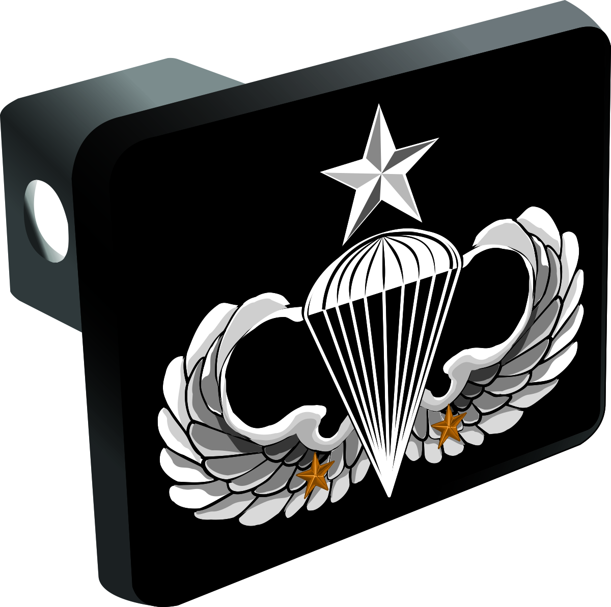 This U.S. Army Senior 2 Combat Jump Wings Trailer Hitch Cover is proudly Made in the USA. Each Hitch Cover's face plate measures 4.7" x 3.4" and is applied on a black heavy duty injection molded plastic 2" hitch cover; link pin not included. The face plate of the hitch cover is sublimation printed to provide a beautiful glossy finish sure to catch the eye. This hitch cover would make a wonderful addition to your truck or other vehicle.A percentage of the sale of each ArmyDecals item is forwarded to the licensing departments of each respective branch of service in support of the MWR (Morale, Welfare, & Recreation) program. These payments are made by either ALL4U LLC or the wholesaler from where the item originated. Our team thanks you for your service and your support of these programs.