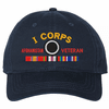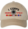 Show your Army pride with this I Corps Afghanistan Veteran with Ribbons Unstructured Dad Cap from ArmyDecals. Crafted from 100% washed chino twill cotton, this six-panel, low-profile cap offers a relaxed and comfortable fit. Featuring high-quality embroidery done in our Scottsboro, Alabama facility, this cap is designed with a pre-curved visor and an adjustable tri-glide buckle closure for a perfect fit. Whether for everyday wear or as a meaningful gift, this cap is a great way to honor your own or a loved one's service.