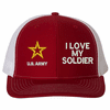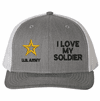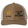 ArmyDecals is proud to offer this I Love My Soldier U.S. Army Mesh Back Cap. The design of this U.S. Army Cap is crisp, clean, and sure to be loved by people of all ages! Select above from our many cap colors. This I Love My Soldier U.S. Army Mesh Back Cap is crafted by our skilled embroidery technicians at our facilities in Scottsboro, AL. As with all ArmyDecals items, your satisfaction is guaranteed!