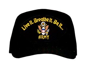 This "Live It, Be It, Breathe It... Army" with Eagle Ball Cap is five panel, emblematic, poly, dark under the visor, full back (not mesh) and fully adjustable. All of our military hats are guaranteed against manufacturer defects. These are the same ball caps found throughout the Military. These Army caps make a wonderful addition to your collection or a great gift for that special someone! Our ball caps are MADE IN AMERICA.