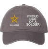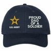 Show your Army pride with this Proud Dad of a Soldier U.S. Army Unstructured Dad Cap from ArmyDecals. Crafted from 100% washed chino twill cotton, this six-panel, low-profile cap offers a relaxed and comfortable fit. Featuring high-quality embroidery done in our Scottsboro, Alabama facility, this cap is designed with a pre-curved visor and an adjustable tri-glide buckle closure for a perfect fit. Whether for everyday wear or as a meaningful gift, this cap is a great way to honor your own or a loved one's service.