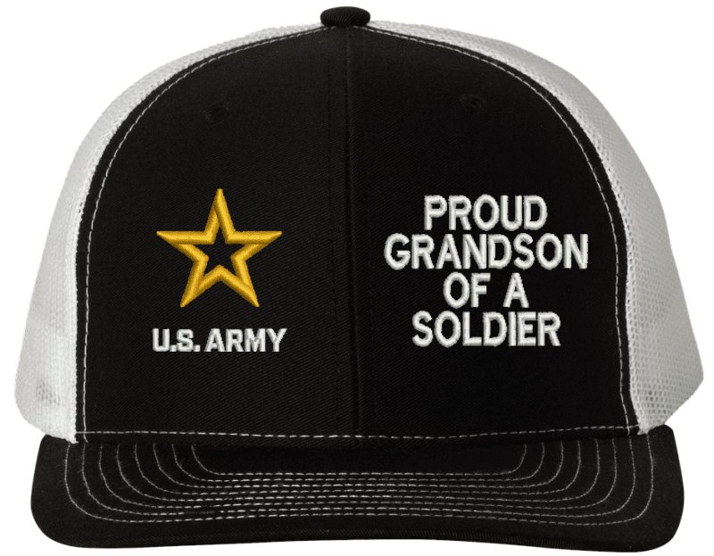 ArmyDecals is proud to offer this Proud Grandson of a Soldier U.S. Army Mesh Back Cap. The design of this U.S. Army Cap is crisp, clean, and sure to be loved by people of all ages! Select above from our many cap colors. This Proud Grandson of a Soldier U.S. Army Mesh Back Cap is crafted by our skilled embroidery technicians at our facilities in Scottsboro, AL. As with all ArmyDecals items, your satisfaction is guaranteed!