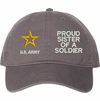 Show your Army pride with this Proud Sister of a Soldier U.S. Army Unstructured Dad Cap from ArmyDecals. Crafted from 100% washed chino twill cotton, this six-panel, low-profile cap offers a relaxed and comfortable fit. Featuring high-quality embroidery done in our Scottsboro, Alabama facility, this cap is designed with a pre-curved visor and an adjustable tri-glide buckle closure for a perfect fit. Whether for everyday wear or as a meaningful gift, this cap is a great way to honor your own or a loved one's service.