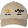Show your Army pride with this Proud Supporter of a Soldier U.S. Army Unstructured Dad Cap from ArmyDecals. Crafted from 100% washed chino twill cotton, this six-panel, low-profile cap offers a relaxed and comfortable fit. Featuring high-quality embroidery done in our Scottsboro, Alabama facility, this cap is designed with a pre-curved visor and an adjustable tri-glide buckle closure for a perfect fit. Whether for everyday wear or as a meaningful gift, this cap is a great way to honor your own or a loved one's service.