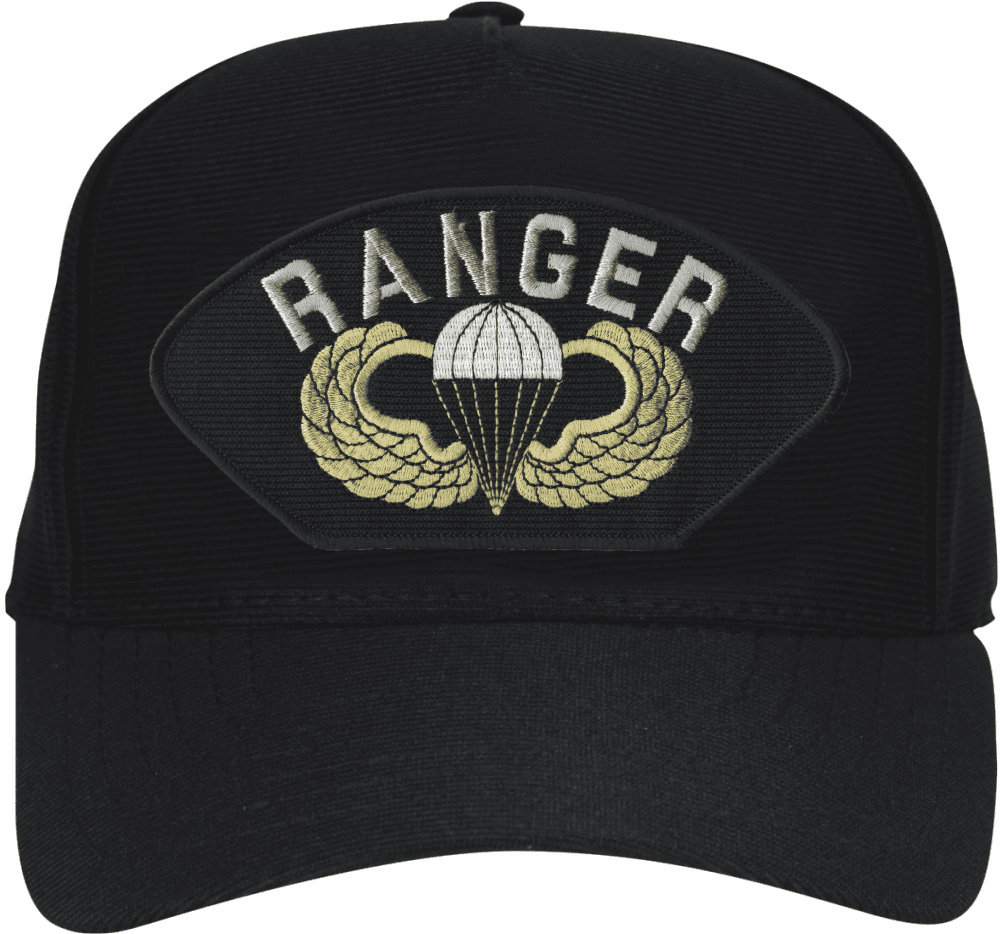 This Ranger With Parachute And Wings ball cap is five panel, emblematic, poly, dark under the visor, full back (not mesh) and fully adjustable. All of our military hats are guaranteed against manufacturer defects. These are the same ball caps found throughout the Military. These Army caps make a wonderful addition to your collection or a great gift for that special someone! Our ball caps are MADE IN AMERICA.