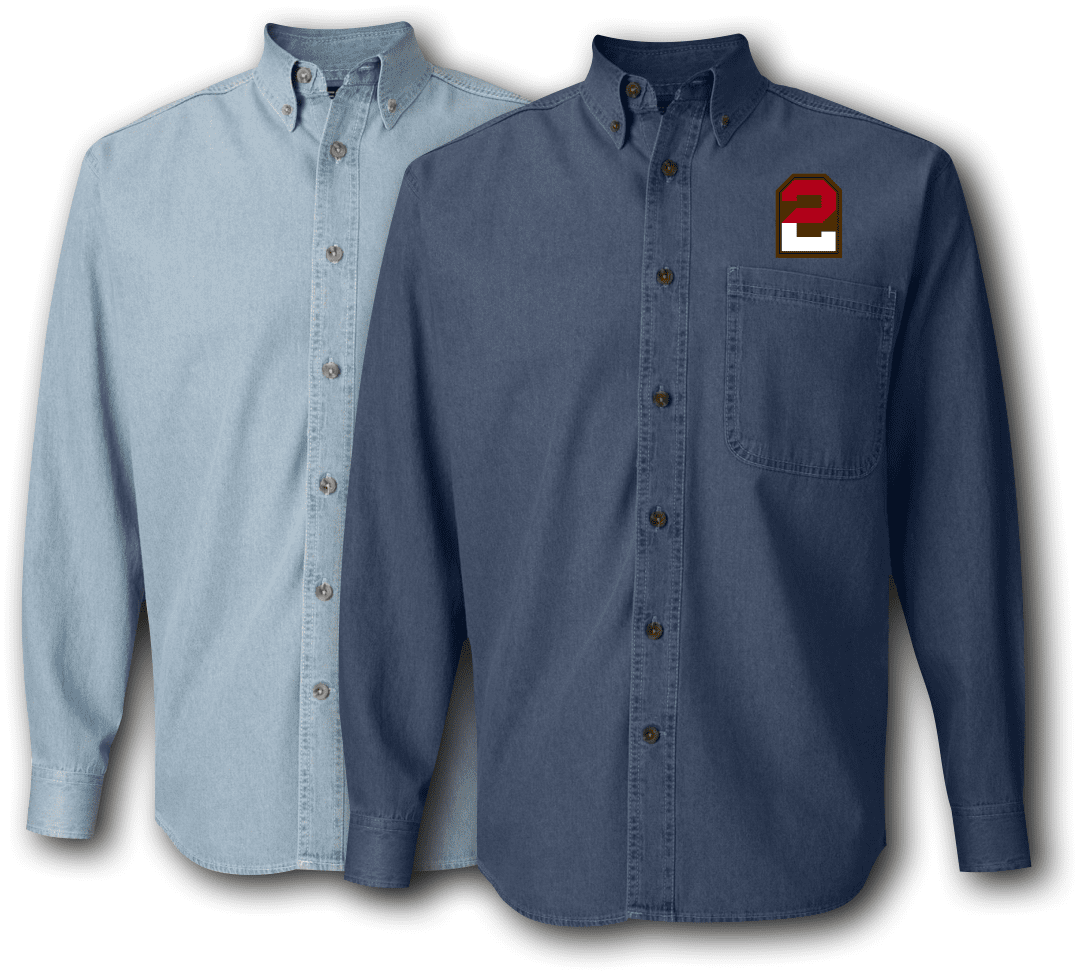 This Second US Army patch Denim Shirt is made 6.5 oz. 100% cotton denim, Button-down collar with woodtone buttons, Three woodtone buttons on adjustable placket cuff, Double-needle sittching throughout, felled seams, Left chest pocket, Two-ply back yoke and locker loop, and a seamless body with set-in sleeves. Each denim shirt is embroidered in the USA with high quality Rapos thread and is available in 2 colors. Custom text can be added beneath the insignia from the drop down menu above. This Second US Army patch Denim Shirt would make a wonderful addition to your collection or a great gift! It’s quality is guaranteed.