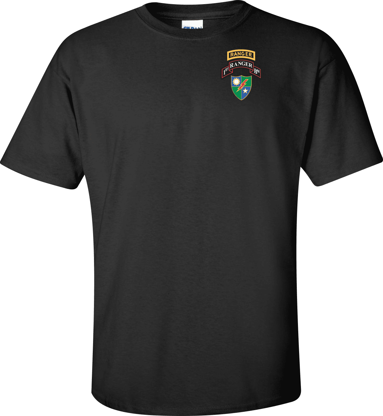 ArmyDecals is proud to offer this fine U.S. Army 1st Ranger Battalion 75th Ranger Regiment With Ranger Tab T-shirt. This shirt is available with several options for the image on the front of the shirt, as well as, offering a full-sized Insignia on the back. Each U.S. Army 1st Ranger Battalion 75th Ranger Regiment With Ranger Tab T-shirt is proudly printed in the USA.