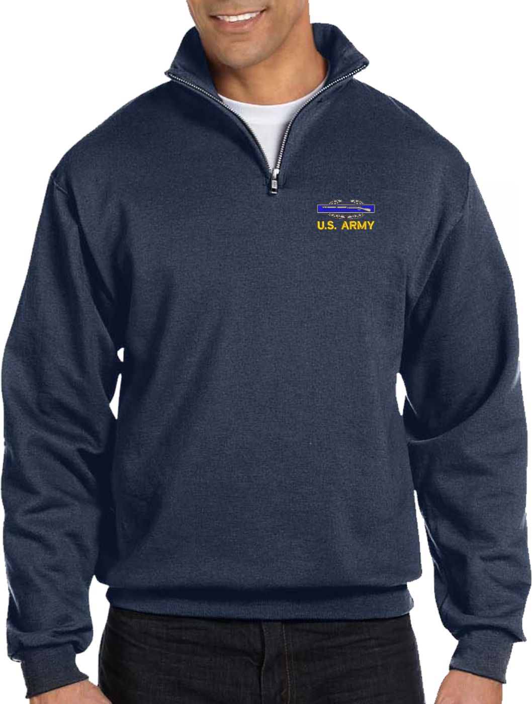 ArmyDecals is proud to offer this U.S. Army Combat Infantry Badge with "U.S. Army" Text Embroidered Embroidered Quarter-Zip Pullover. This quality shirt is embroidered by our ArmyDecals team in Northeast Alabama.
