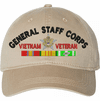 Show your Army pride with this U.S. Army General Staff Corps Vietnam Veteran Unstructured Dad Cap from ArmyDecals. Crafted from 100% washed chino twill cotton, this six-panel, low-profile cap offers a relaxed and comfortable fit. Featuring high-quality embroidery done in our Scottsboro, Alabama facility, this cap is designed with a pre-curved visor and an adjustable tri-glide buckle closure for a perfect fit. Whether for everyday wear or as a meaningful gift, this cap is a great way to honor your own or a loved one's service.
