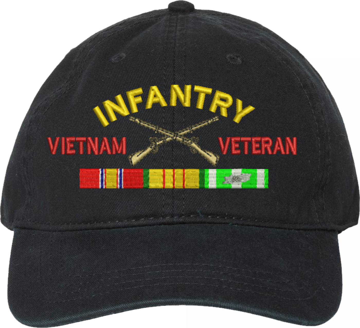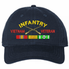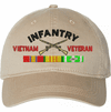 Show your Army pride with this U.S. Army Infantry Vietnam Veteran Unstructured Dad Cap from ArmyDecals. Crafted from 100% washed chino twill cotton, this six-panel, low-profile cap offers a relaxed and comfortable fit. Featuring high-quality embroidery done in our Scottsboro, Alabama facility, this cap is designed with a pre-curved visor and an adjustable tri-glide buckle closure for a perfect fit. Whether for everyday wear or as a meaningful gift, this cap is a great way to honor your own or a loved one's service.