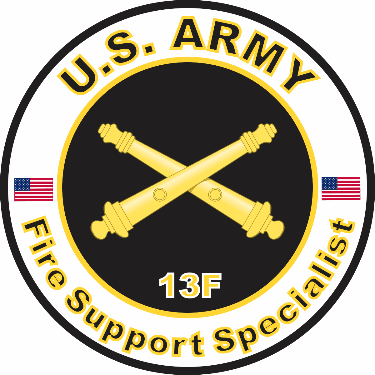 US Army MOS 13F Decal: Forward Observer was designed by the ArmyDecals team and manufactured at our headquarters in Scottsboro, Alabama. This sticker is printed on high quality vinyl using solvent inks which will provide long lasting results. After printing, this Decal is laminated and then die cut. Our Military decals and stickers have no excess plastic corners as seen on imported versions of Military Stickers.