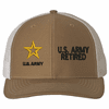 ArmyDecals is proud to offer this U.S. Army Retired Mesh Back Cap. The design of this U.S. Army Cap is crisp, clean, and sure to be loved by people of all ages! Select above from our many cap colors. This U.S. Army Retired Mesh Back Cap is crafted by our skilled embroidery technicians at our facilities in Scottsboro, AL. As with all ArmyDecals items, your satisfaction is guaranteed!
