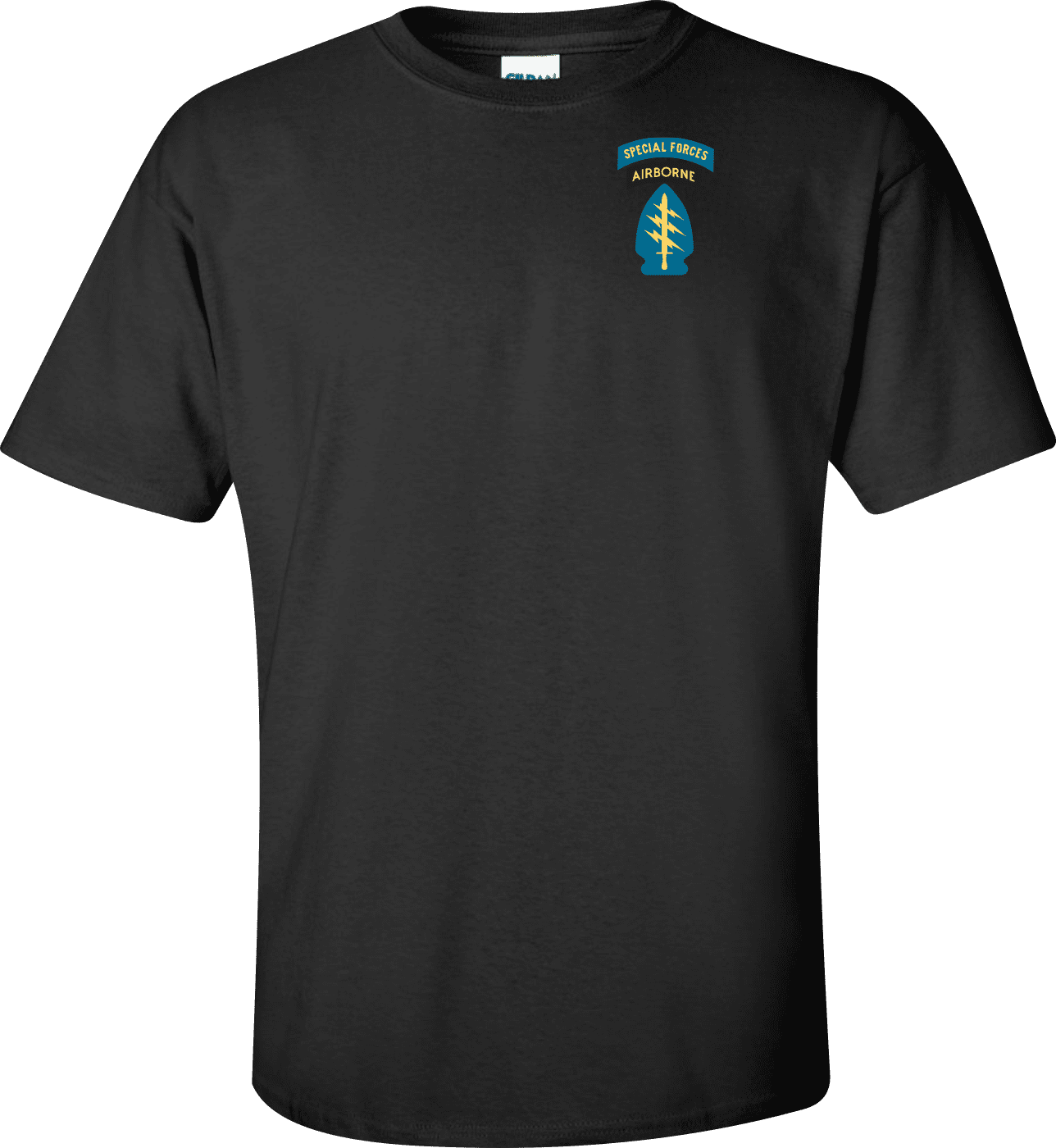 ArmyDecals is proud to offer this fine U.S. Army Special Forces Airborne Insignia and Tab T-shirt. This shirt is available with several options for the image on the front of the shirt, as well as, offering a full-sized Insignia on the back. Each U.S. Army Special Forces Airborne Insignia and Tab T-shirt is proudly printed in the USA.